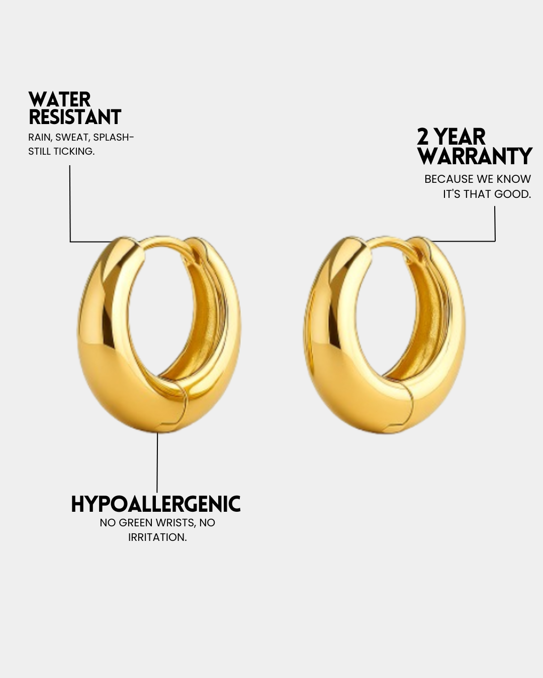 Waterproof, Hypoallergenic & Tarnish Free