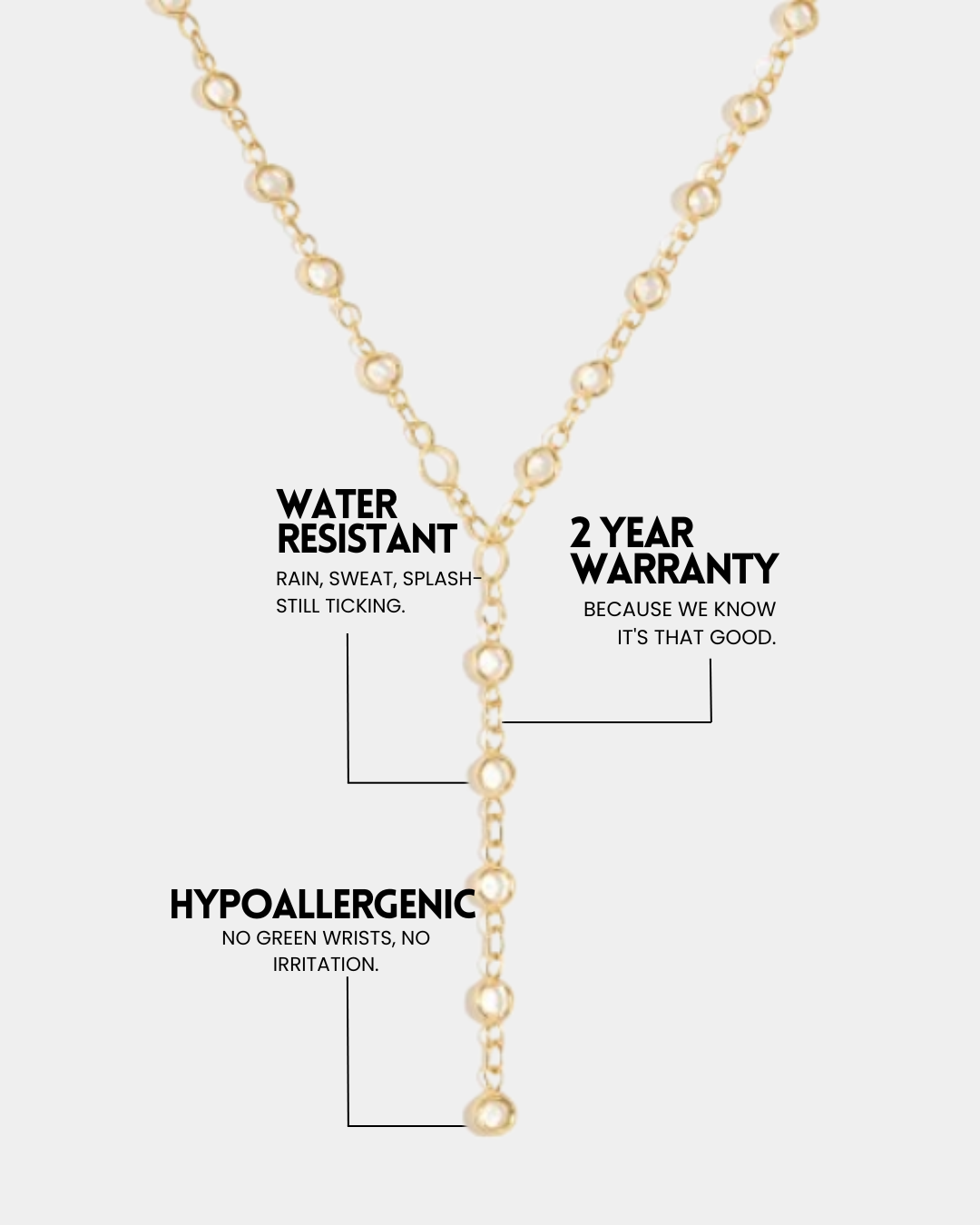 Crafted to match your everyday lifestyle, our jewelry is fully waterproof, gentle on sensitive skin, and made with materials that resist tarnishing, so you can wear it effortlessly, day in and day out.